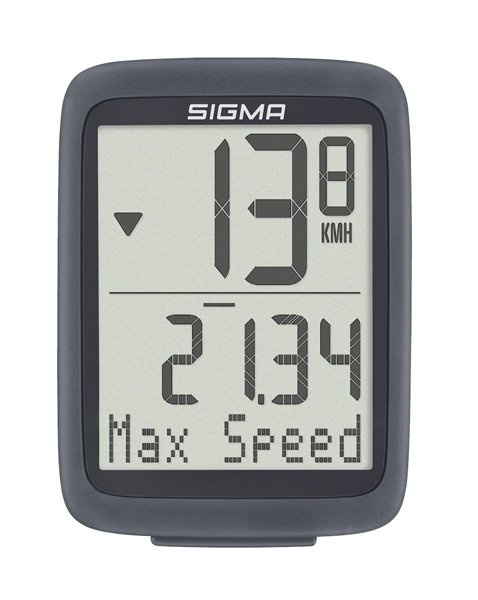 drátový computer, aktuální rychlost, průměrná rychlost, porovnání aktuální/průměrná rychlost, maximální rychlost, vzdálenost, celkové kilometry, doba jízdy, celková doba jízdy, hodiny, teplota, fulltextové zobrazení v sedmi jazycích, předdefinované rozměry plášťů, automatický Start/Stop, archivace dat při výměně baterie (souhrnné hodnoty a nastavení), vodotěsnost podle IPX8, nastavitelný servisní interval (u prodejce), obsah balení a příslušenství:Cyklopočítač (včetně baterie), kabeláž, magnet, upevňovací materiál, návod k obsluze